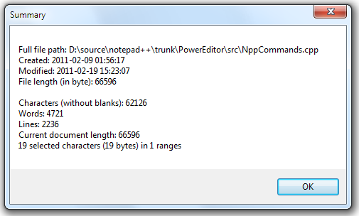 The current properties of a document, like its character count, selection statistics and such, are available through the .